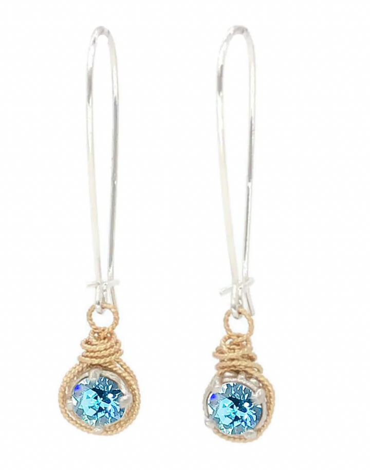 Sterling Silver, 14K Gold Filled twisted wire wrap, settings with European Crystal . Choose any Birthstone color.