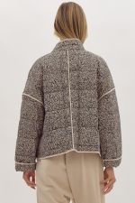 Floral print quilted long sleeve jacket featuring contrasting trim.