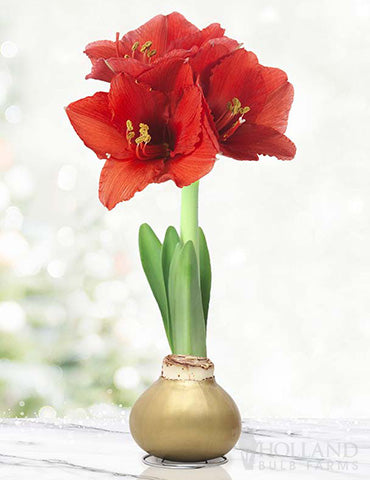 Looking for a unique holiday gift for friends, family or coworkers? These no water, no soil Gold Base Waxed Amaryllis are great gifts for people of all ages and gardening experience levels! All you have to do is take it out of the package, set it on a surface in a brightly lit room and watch it grow! How does it work? These amaryllis contain enough stored energy so that they don't need water or soil to thrive.