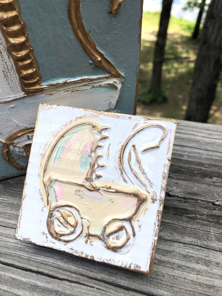 This sweet baby carriage is a perfect addition to a nursery. Makes an adorable baby shower gift or table display!