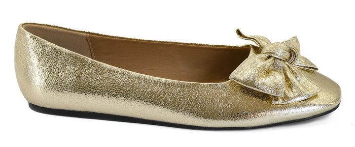 Shine bright from day to night with these stunning metallic gold bow flats. Whether you're dressing up denim or finishing a formal look, these flats bring the perfect mix of charm and glam.