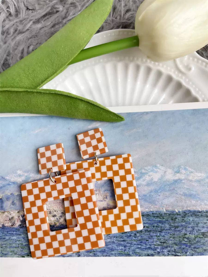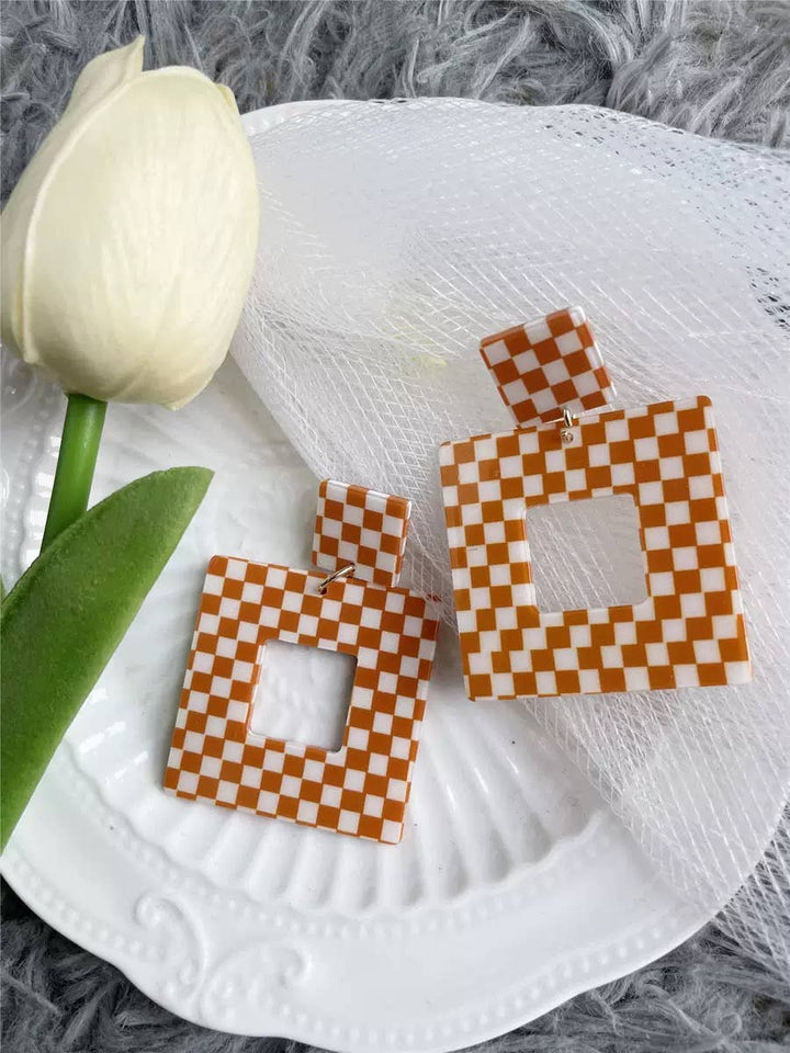 Super cute Tennessee orange and white checkered game day earrings for women.