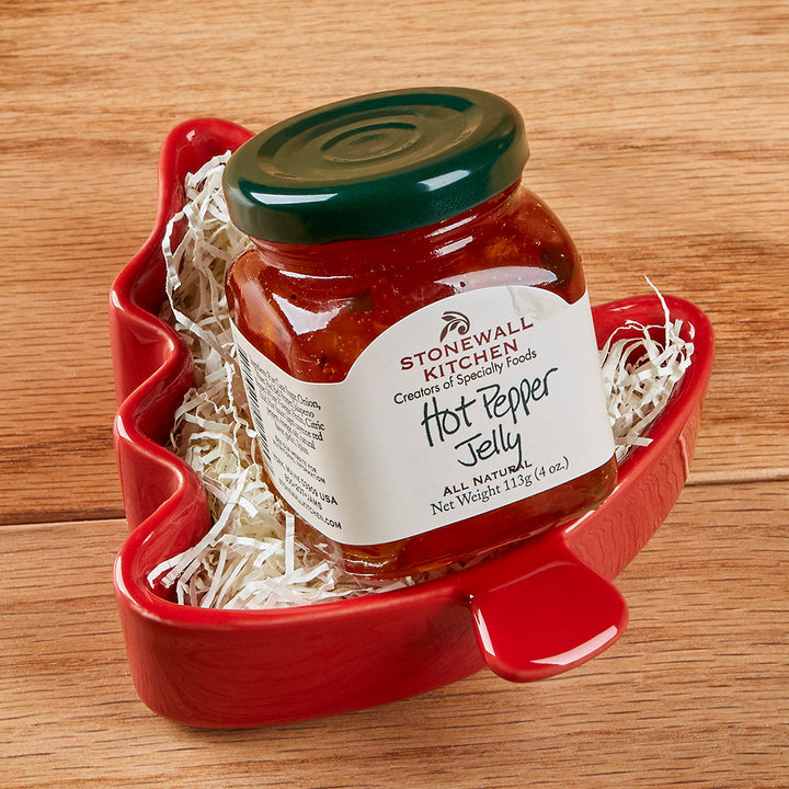 The Stonewall Kitchen Hot Pepper Jelly Ramekin Tree - Seasonal makes the perfect gift this holiday season! This gift set includes a 4 oz container of the Hot Pepper Jelly, and a seasonal ramekin. This set comes packaged in beautiful holiday packaging and makes a great gift for Christmas or for a hostess!