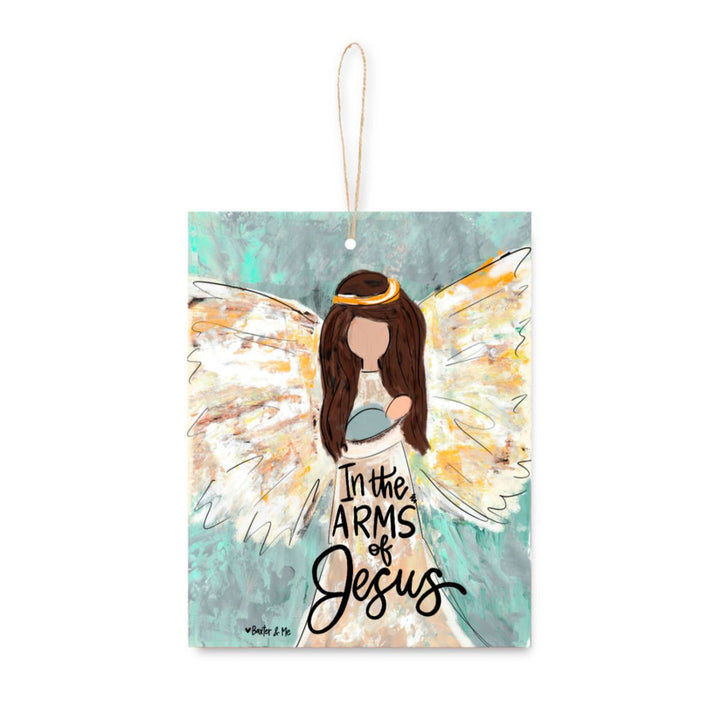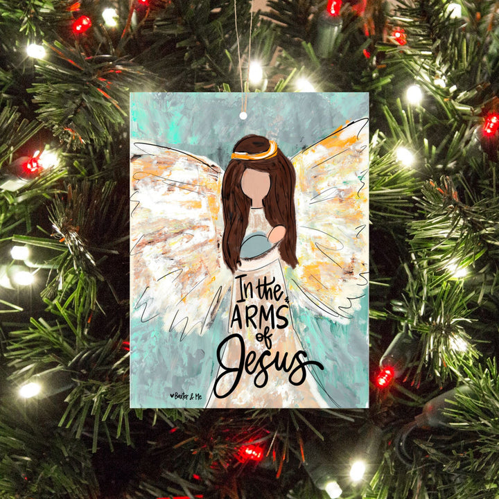 Each ornament measures 3.75" wide and 4.75" tall and includes a hand-tied jute hanger.