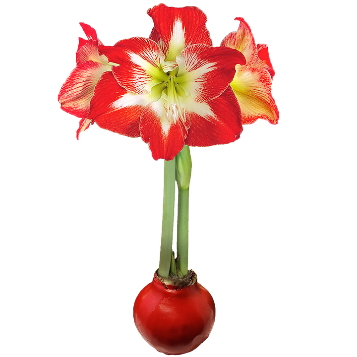 Minerva Red Wax Base Keep 59-77 degrees F (15-25 degrees C), No watering Necessary, in case of wax or glitter coating, do not leave the bulb in direct sunlight or near heat to avoid melting. After blooming, the coating can be removed, and the bulb can be composted or planted. In case of wax or glitter coating, cracks may appear from the growth of the stalk while blooming. Not edible.