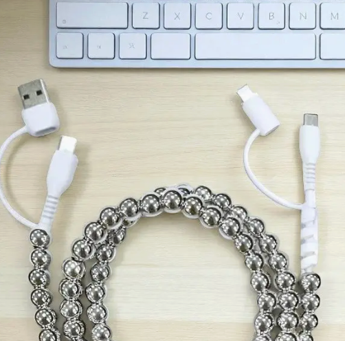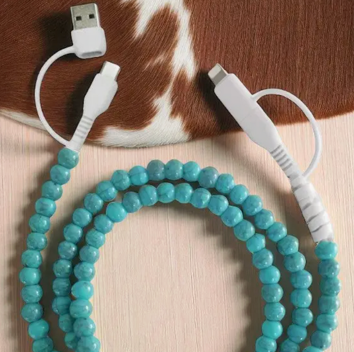 Turn up the energy with Beaded Phone Charging Cord! This bold and cheerful cable brings a fun pop of color to your tech lineup while keeping your devices powered up. Featuring multiple connectors (USB, USB C, and Lightning adapter), it’s as versatile as it is stylish.
