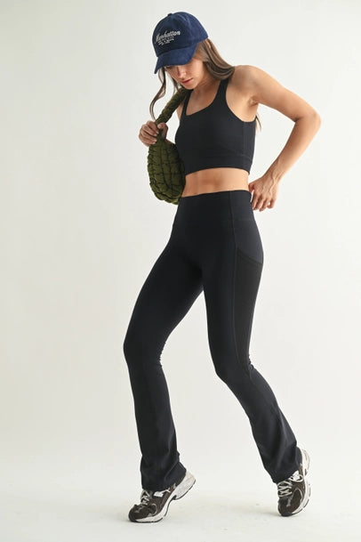 Sleek, supportive, and made to move with you. Crafted from our signature Venice fabric—heavier weight for extra support, but still buttery soft and ultra-stretchy—these flared leggings feature a wide waistband for a smooth fit and mesh side pockets to stash the essentials. Slight flare at the hem adds just the right touch of style and movement. Luciana is 5'9", a size 2, and is wearing an S 76% polyester 24% spandex Four-way stretch